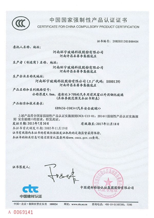 2004年,許昌環(huán)宇安全玻璃有限責(zé)任公司正式成立